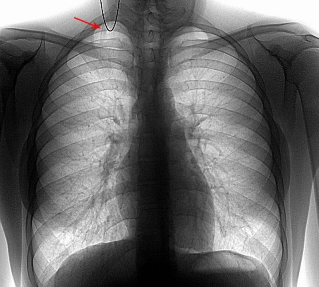 Это ребро называется шейным, и встречается у 0,05–3 процентов людей, как показали исследования. Оно растет из основания шеи чуть выше ключицы, и иногда не формируется полностью, а состоит лишь из тонкой полоски волокна ткани.