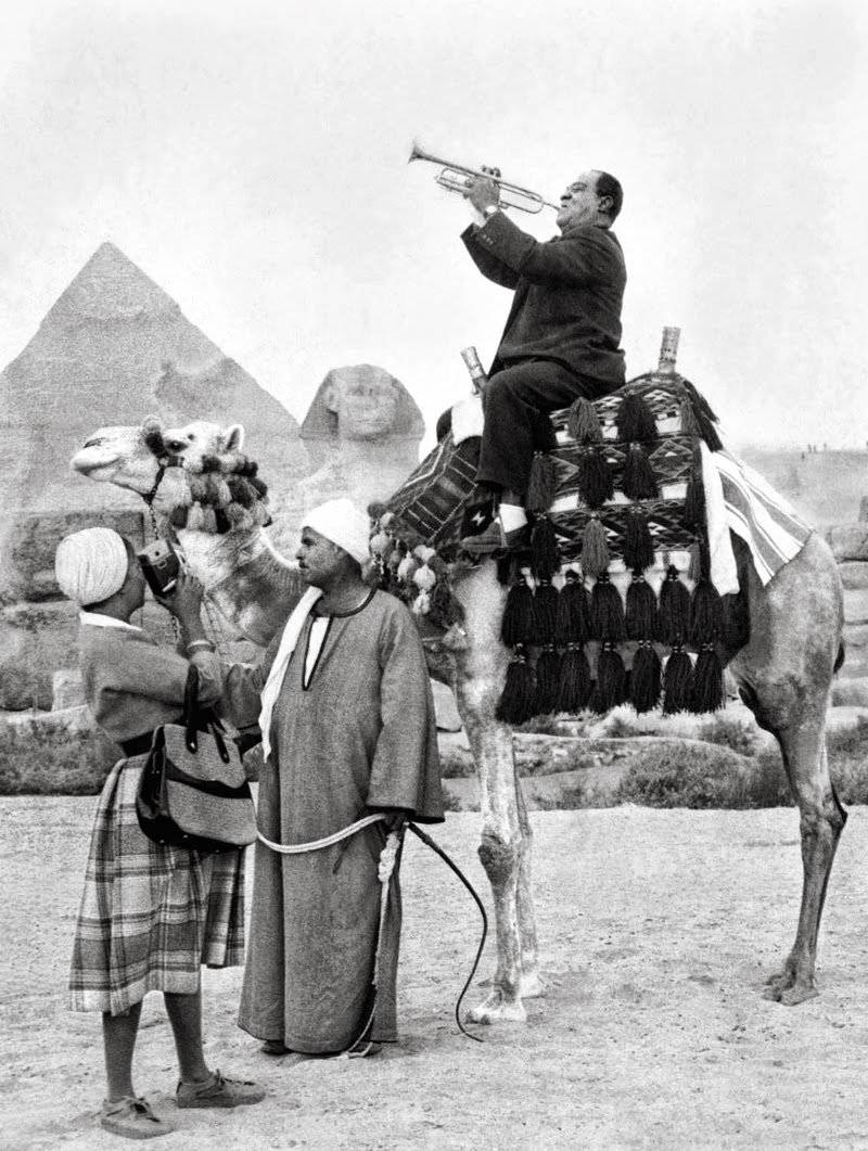В «джазовой дипломатии» участвовали в том числе такие популярные музыканты, как Луи Армстронг. А направлена она была не только на СССР, но и на другие страны, которые делали выбор между капиталистической и коммунистической системами. Один из экспонатов выставки – это, по словам Манн, «очень известная , которая была сделана во время его поездки в Египет».